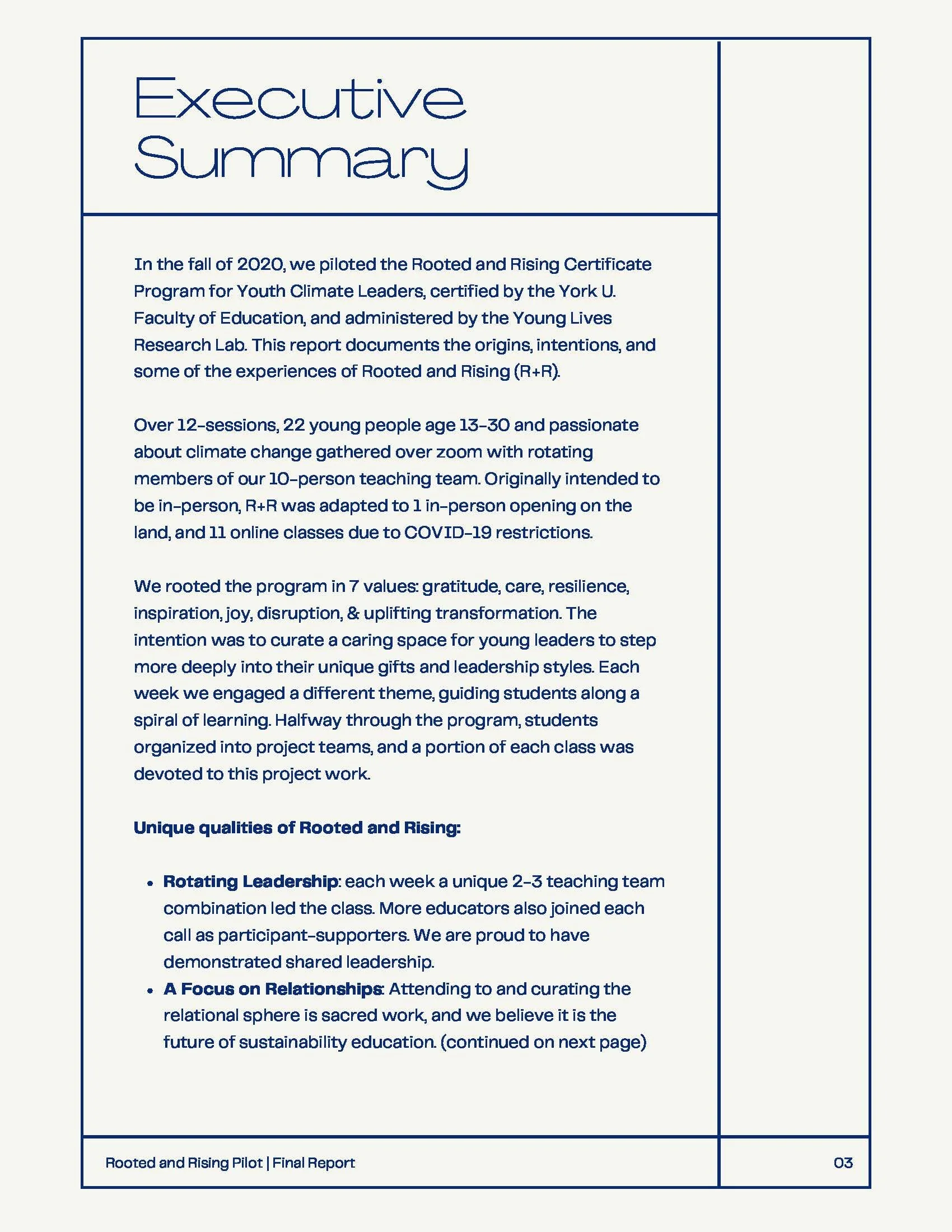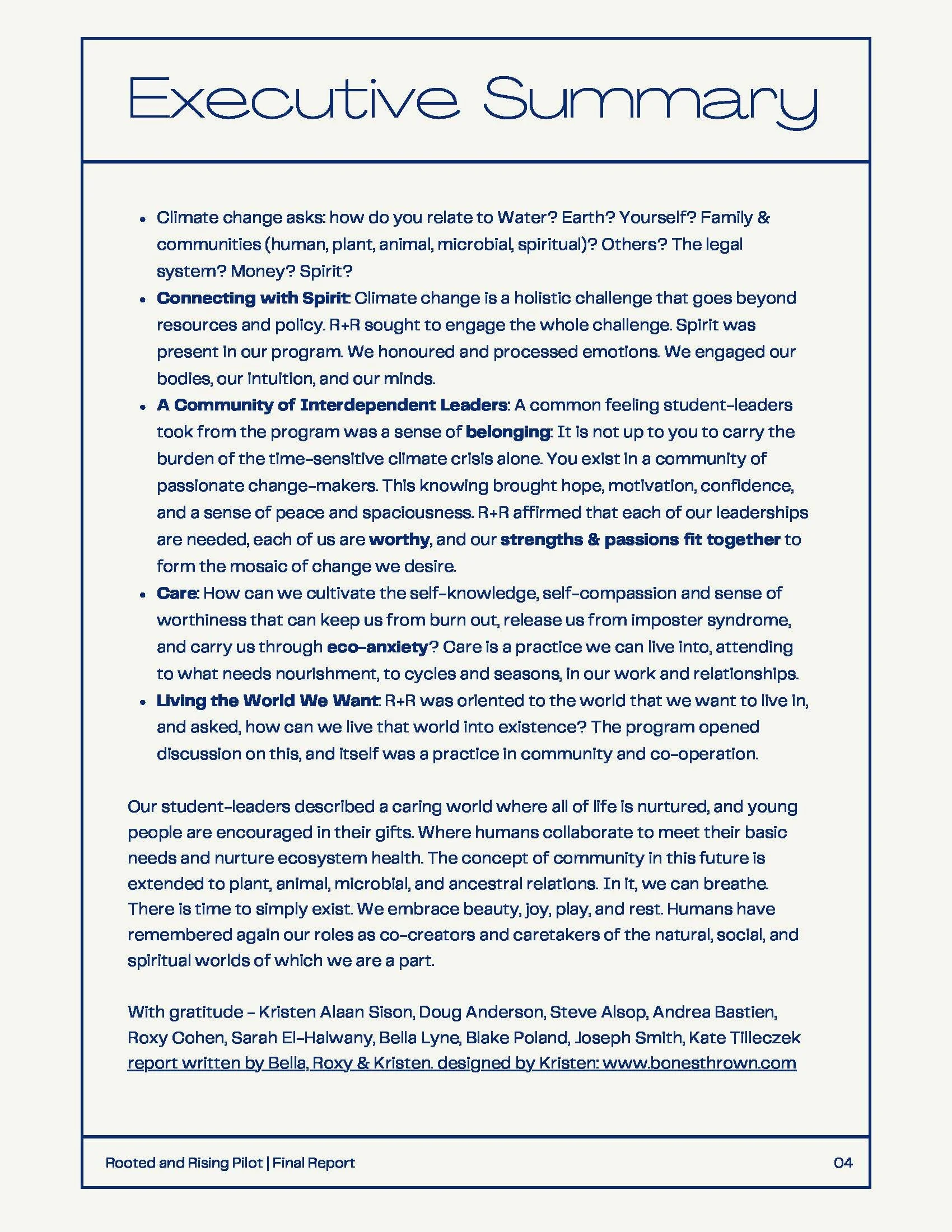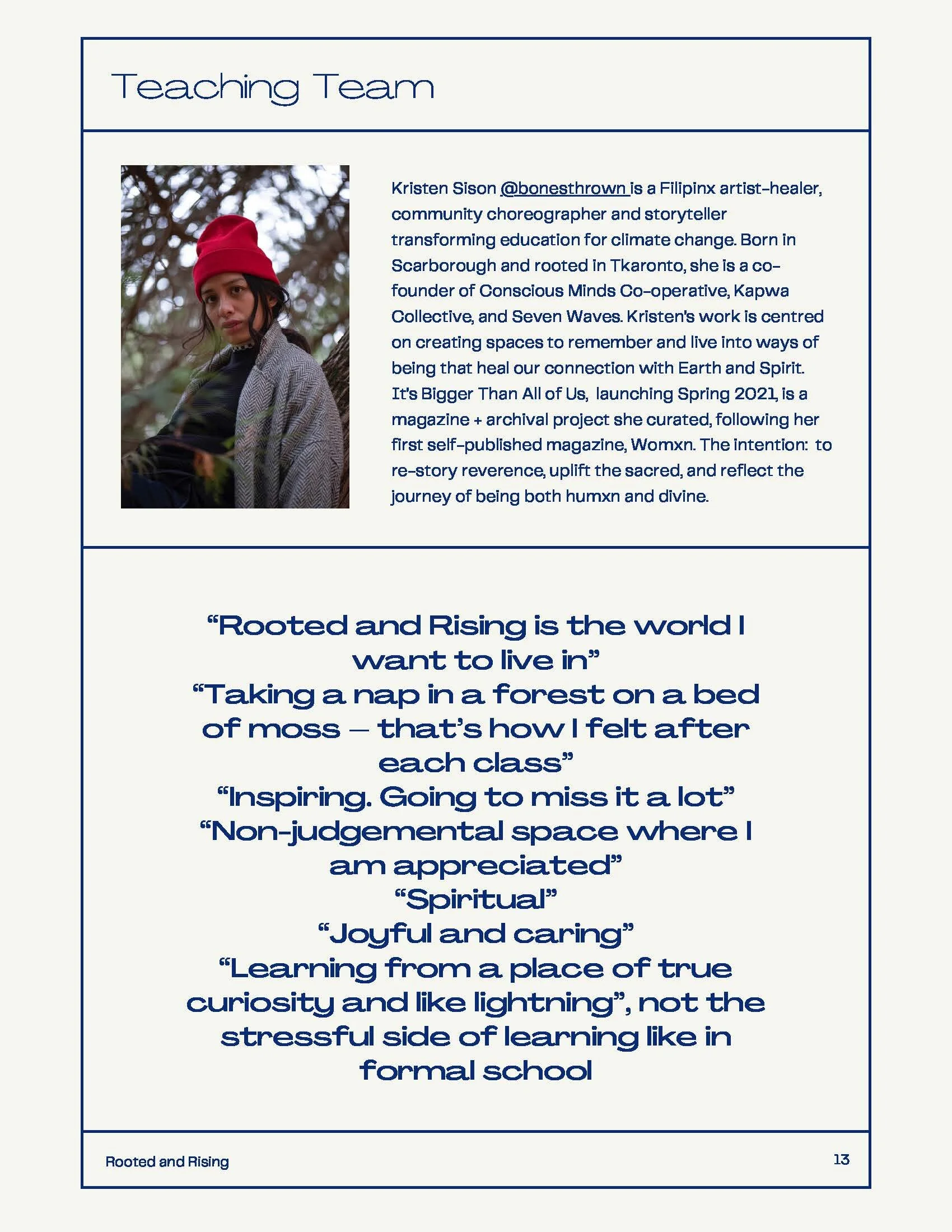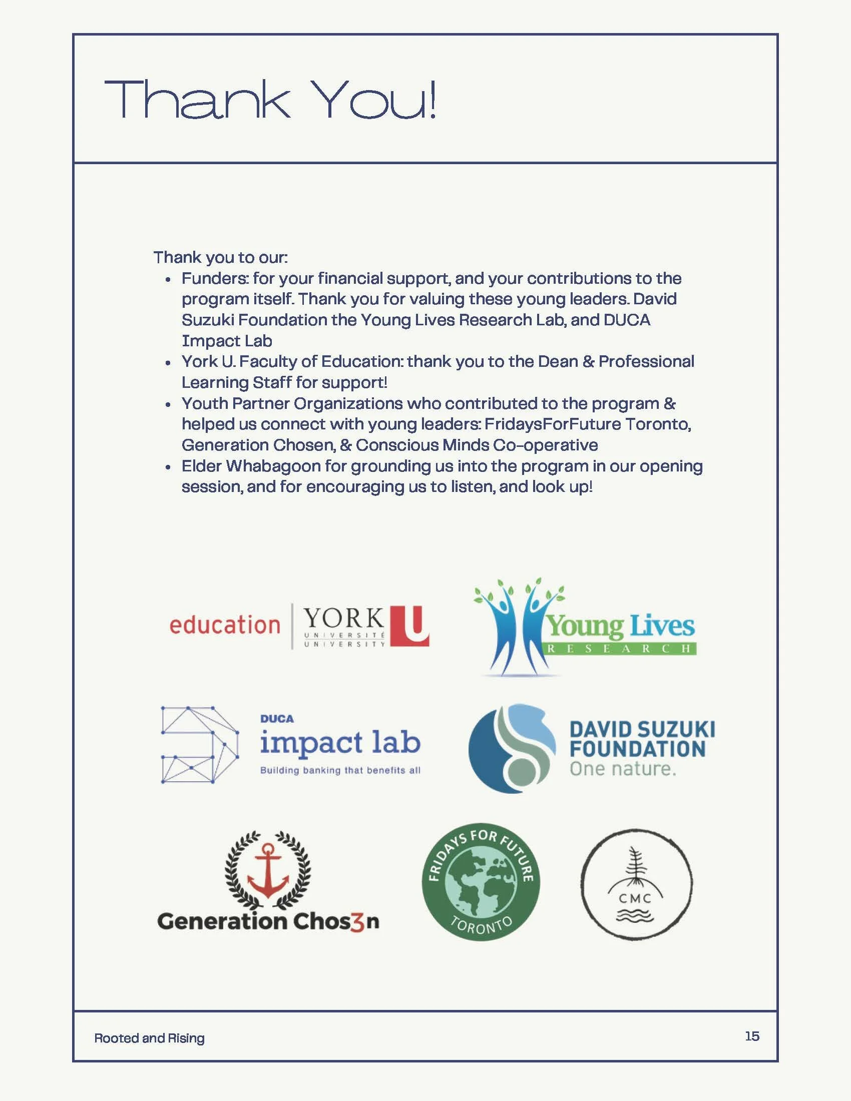 These are troubling times. Led by the demands of global youth, Canada and 24 other countries have declared a climate emergency. Youth have the passion and ideas to activate changes we need now; for ourselves, for future generations, and for the more-than-human world. Schools and our current methods of education have not equipped students to fully understand, cooperate or respond to this emergency as is needed. Rooted and Rising was envisioned and is led by a bunch of people and community groups, diverse in age, ancestry, experience, and education. The team is a combination of Millennials, Gen Xers and Baby Boomers, all passionate about empowering young leaders. Now certified by York University, this program runs very differently than a typical university classroom and is open to all youth who are passionate about creating a better world for people and all living beings. Rooted and Rising is an action-based response to the global youth call to take this global Planetary Health crisis seriously.