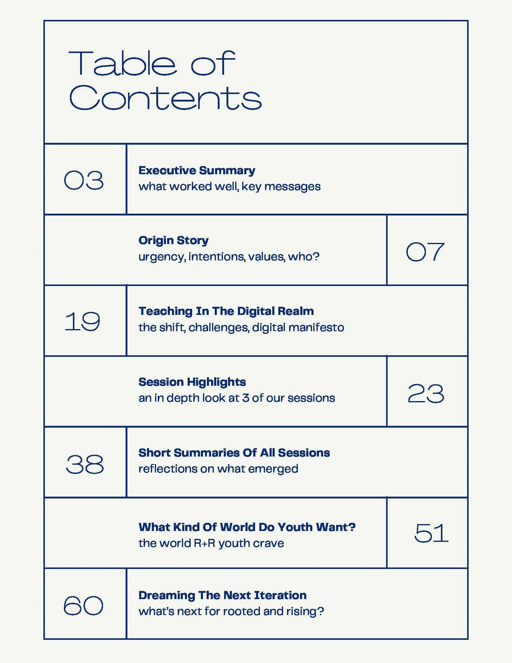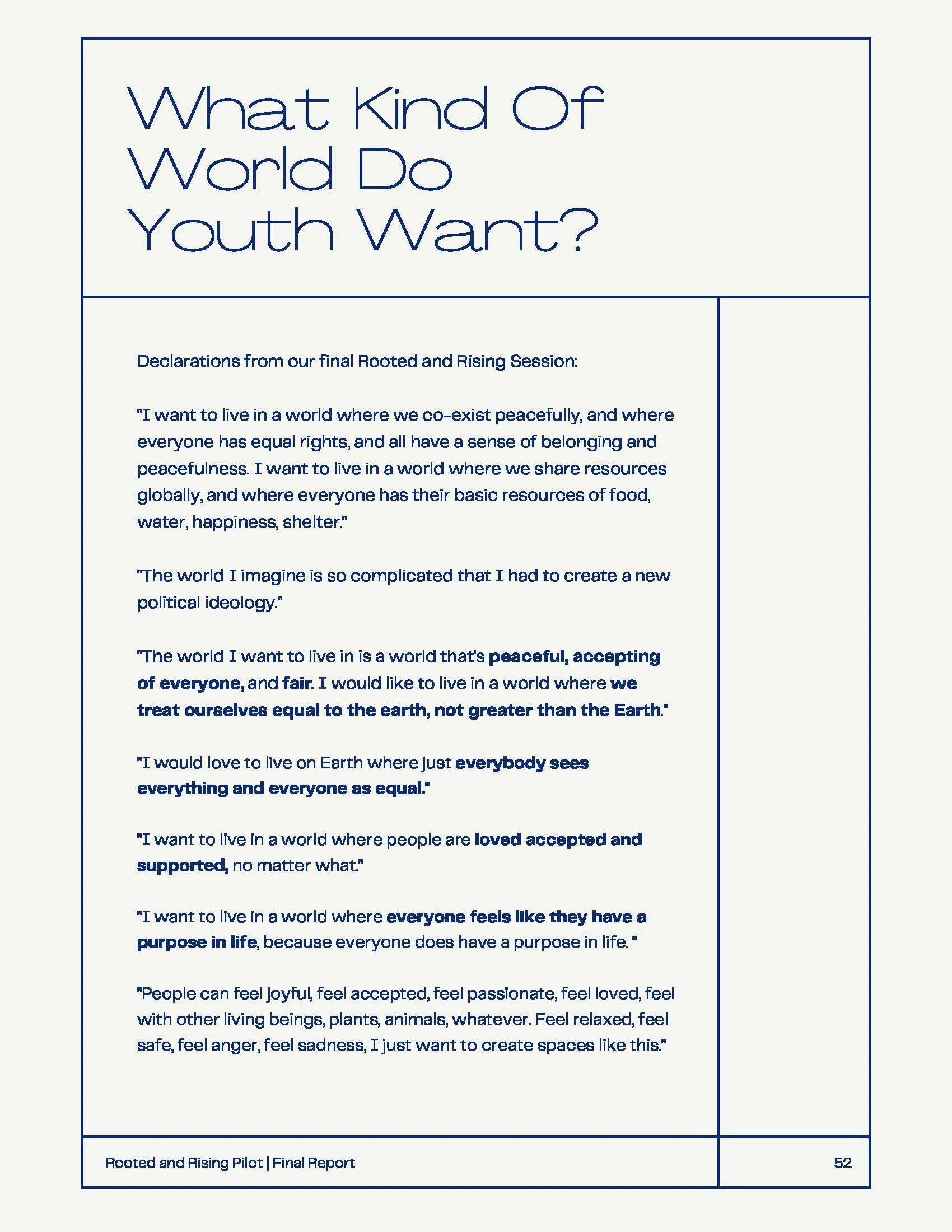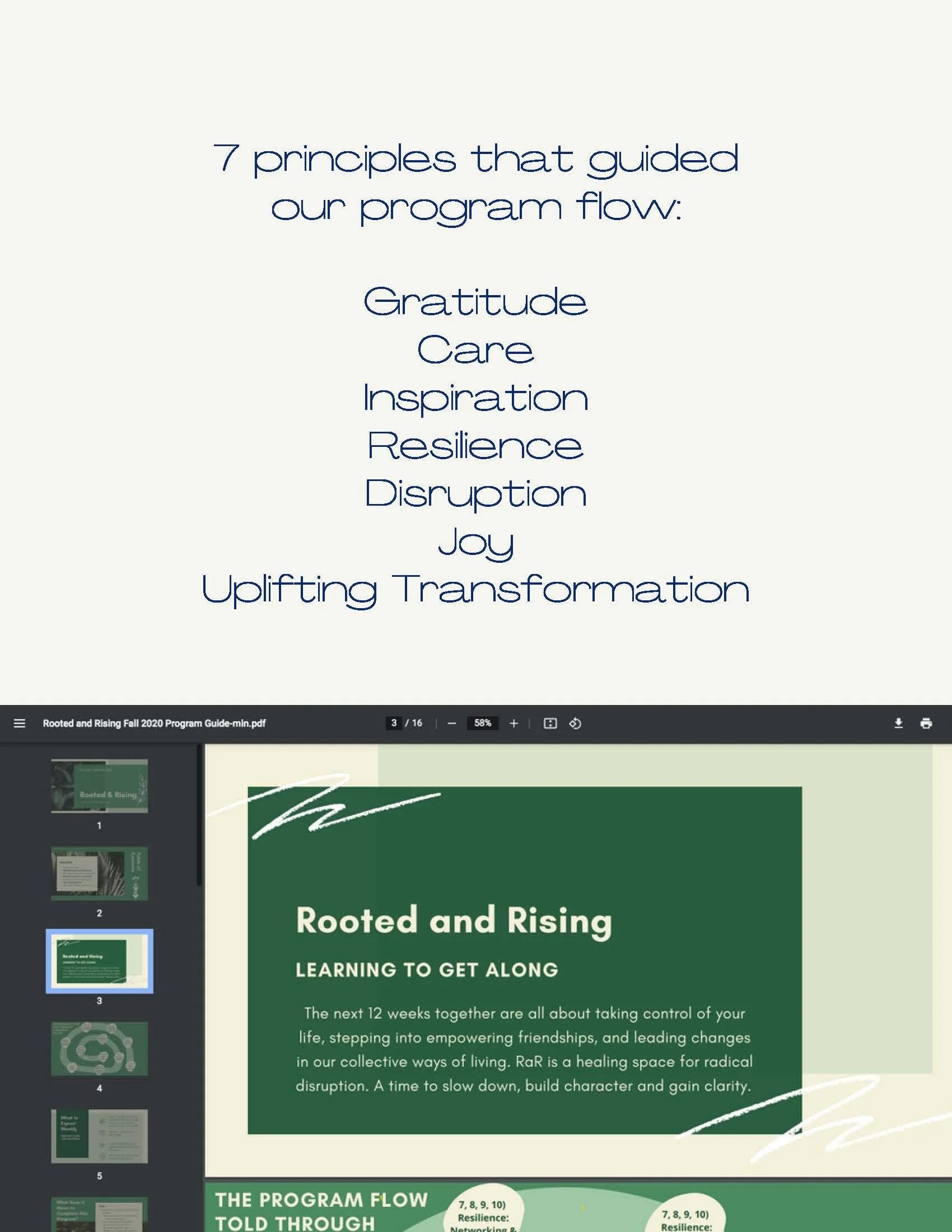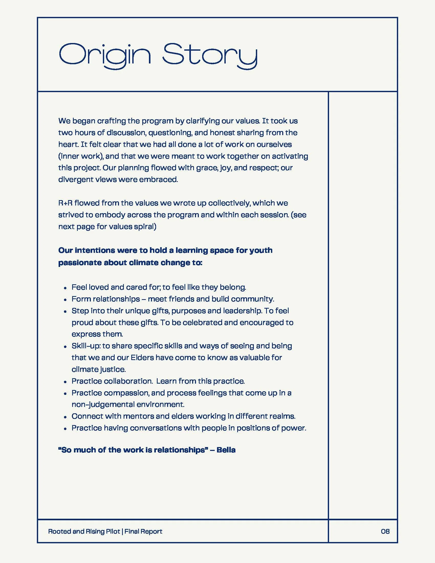 These are troubling times. Led by the demands of global youth, Canada and 24 other countries have declared a climate emergency. Youth have the passion and ideas to activate changes we need now; for ourselves, for future generations, and for the more-than-human world. Schools and our current methods of education have not equipped students to fully understand, cooperate or respond to this emergency as is needed. Rooted and Rising was envisioned and is led by a bunch of people and community groups, diverse in age, ancestry, experience, and education. The team is a combination of Millennials, Gen Xers and Baby Boomers, all passionate about empowering young leaders. Now certified by York University, this program runs very differently than a typical university classroom and is open to all youth who are passionate about creating a better world for people and all living beings. Rooted and Rising is an action-based response to the global youth call to take this global Planetary Health crisis seriously.